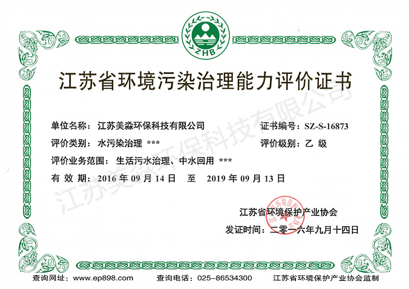 江蘇省環境污染治理能力評價證書 乙級