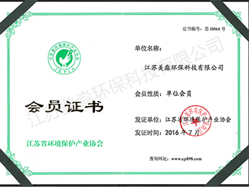 江蘇省環境保護產業協會會員證書