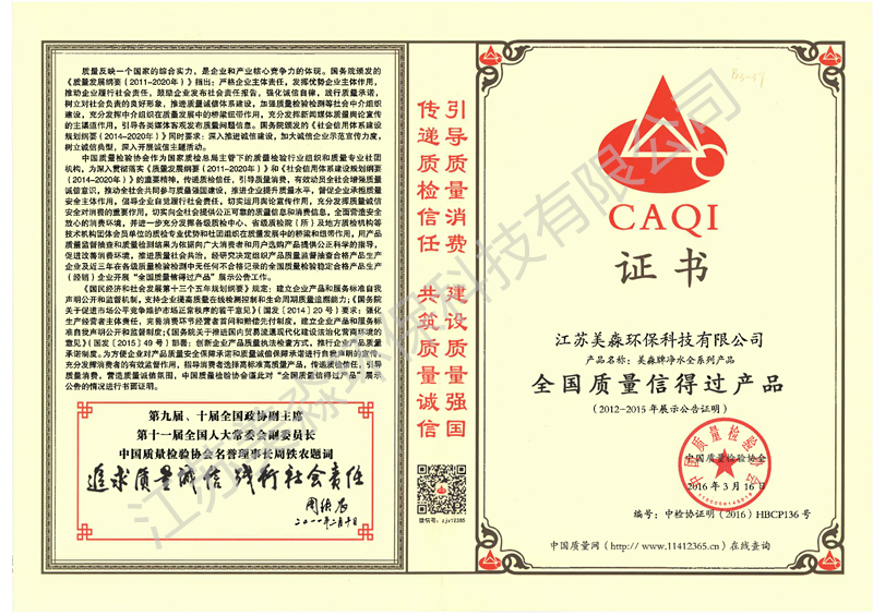 2016年全國質(zhì)量信得過產(chǎn)品